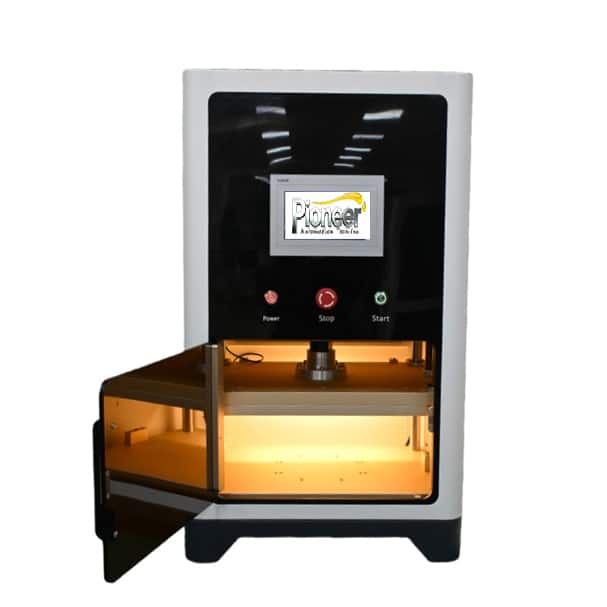 This equipment is used for pressing the mouthpiece onto e‑cigarette atomizers. It consists of the frame, pressing fixture, and electric cylinder assembly. The mechanical system includes the frame assembly and the pressing assembly. These components operate in coordination to ensure that the e‑cigarette atomizer mouthpiece is pressed securely, conveniently, and precisely.